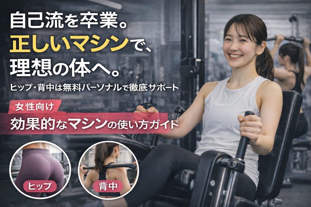 ヒップ・背中といった女性が本当に鍛えたい部位を、正しいマシン・正しいフォームで鍛えることが成功の近道です。