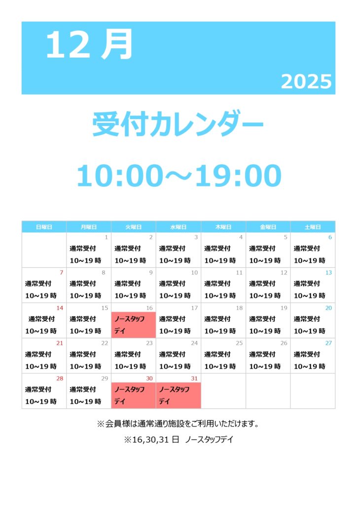 ※スタッフ受付時間は店舗により異なります。詳しくは店舗ページをご確認ください。