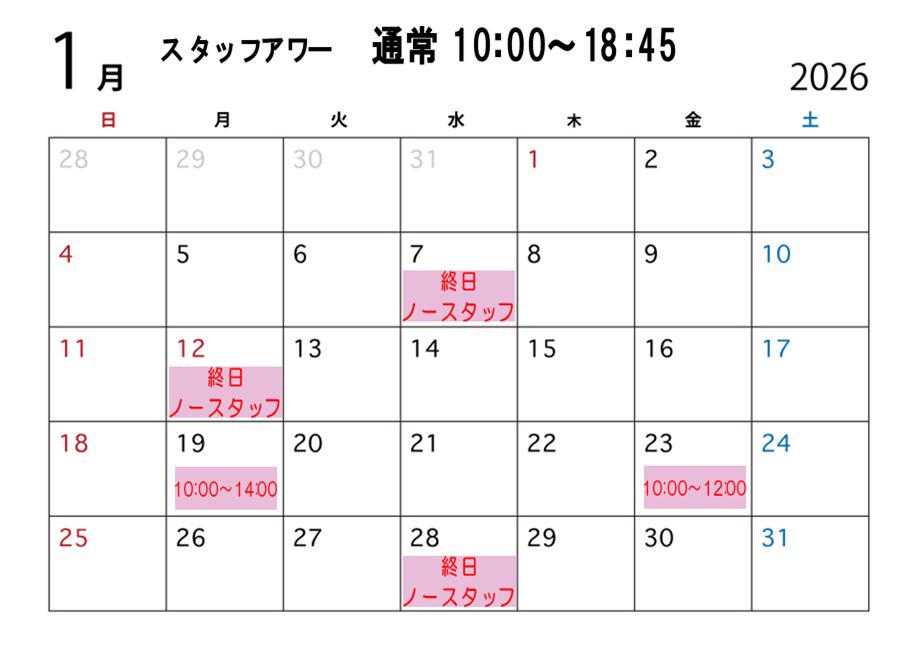※スタッフアワーが変更となる日が稀にございます。ご利用の際は店舗までご確認お願い致します🙇