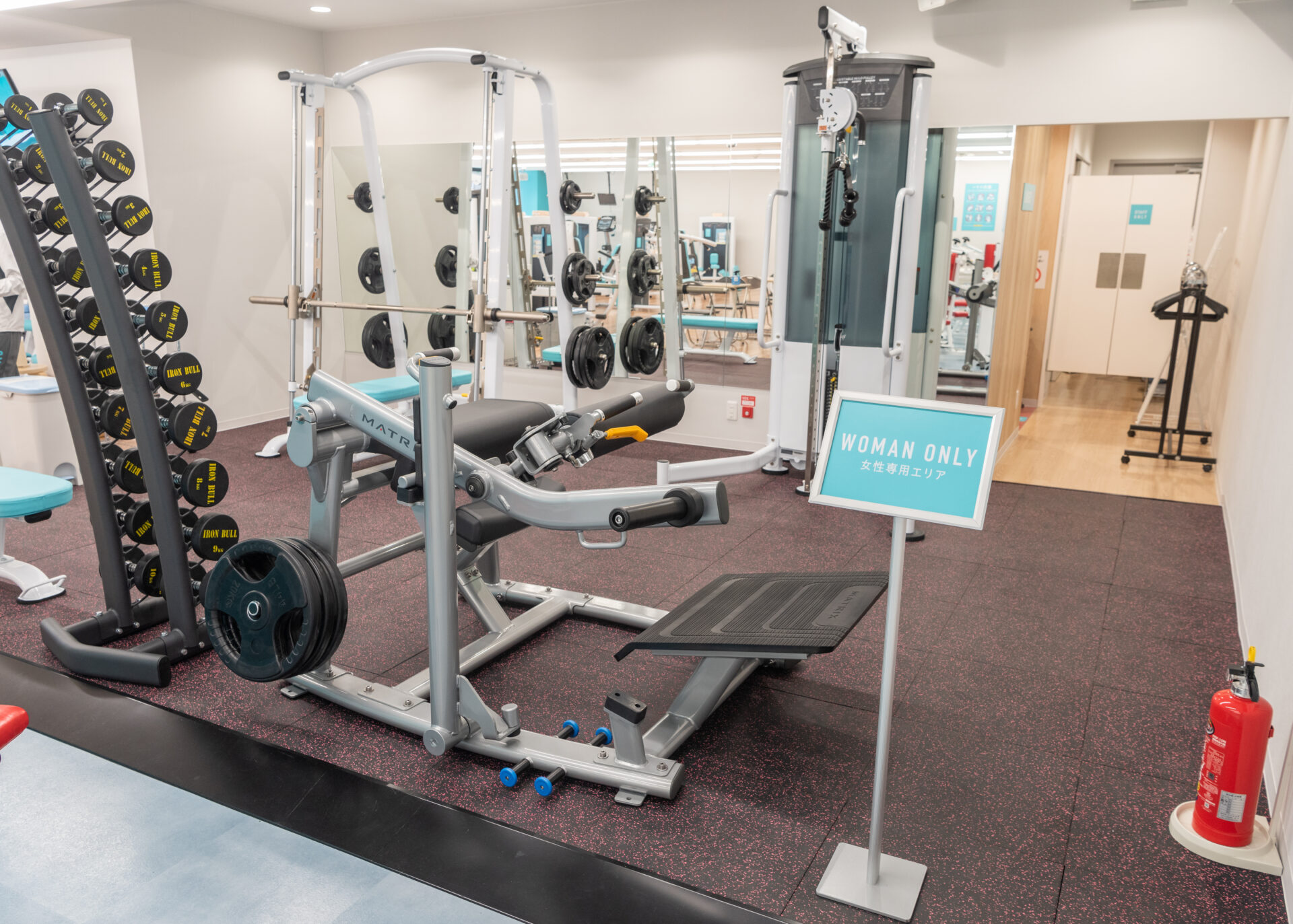 当ジムの施設は女性の方でも扱いやすいものになっており。各種補助用品もありますので、施設利用上のご心配はありません。