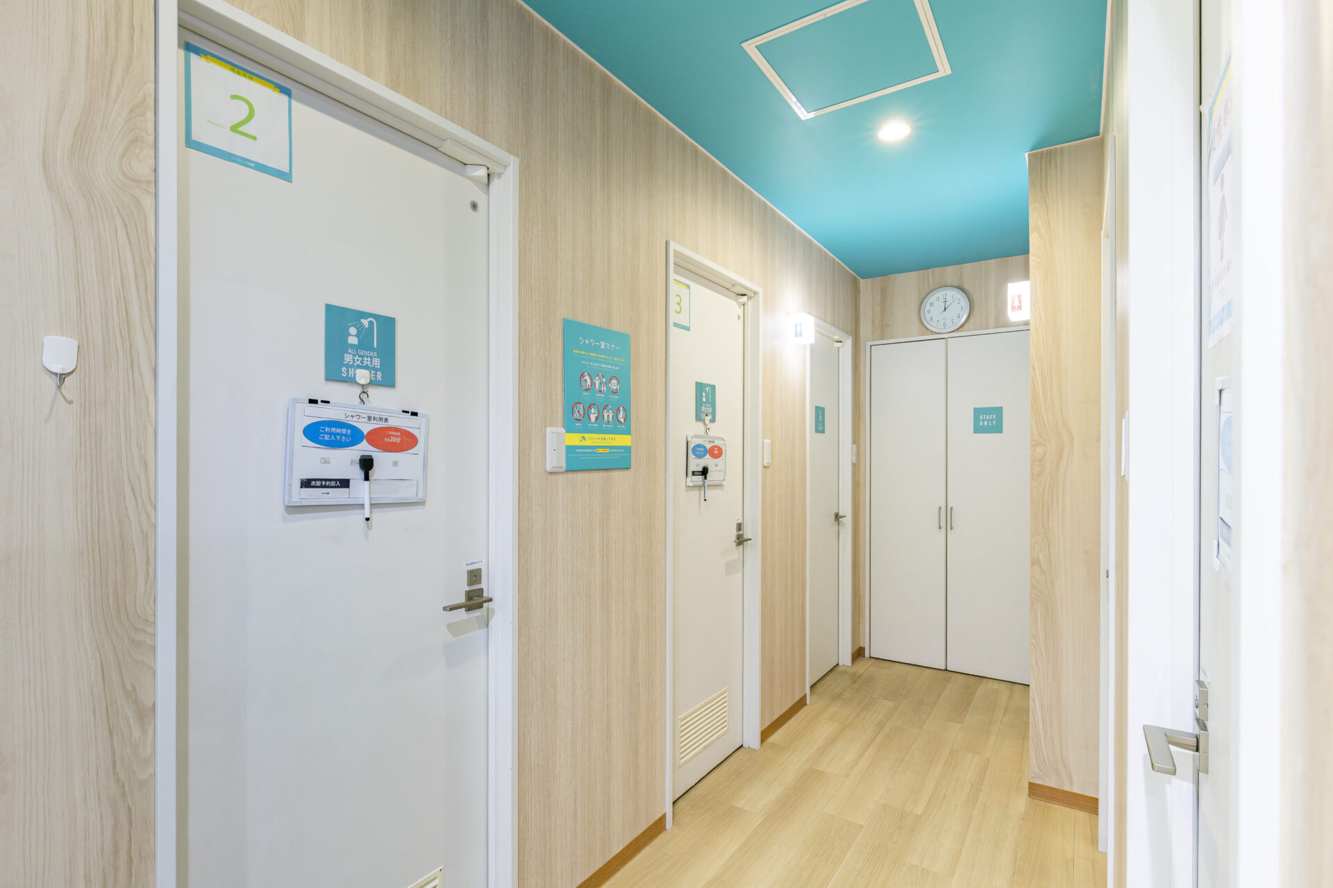 全店舗に男女別、個室のシャワールームがございます。(お風呂はありません。)