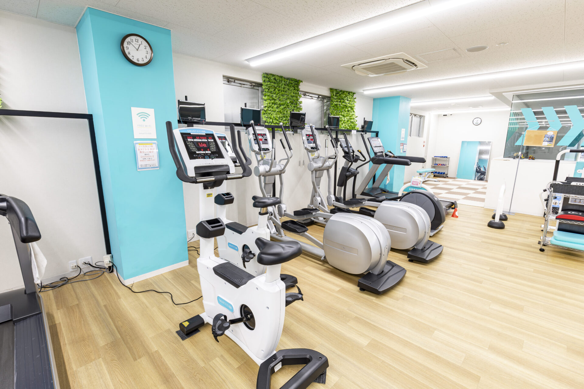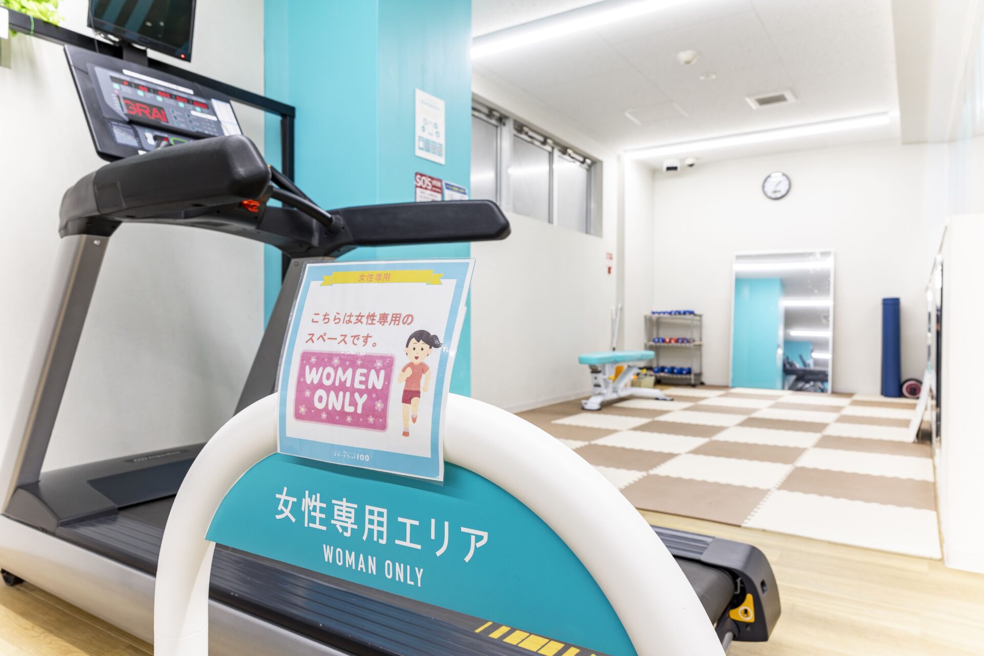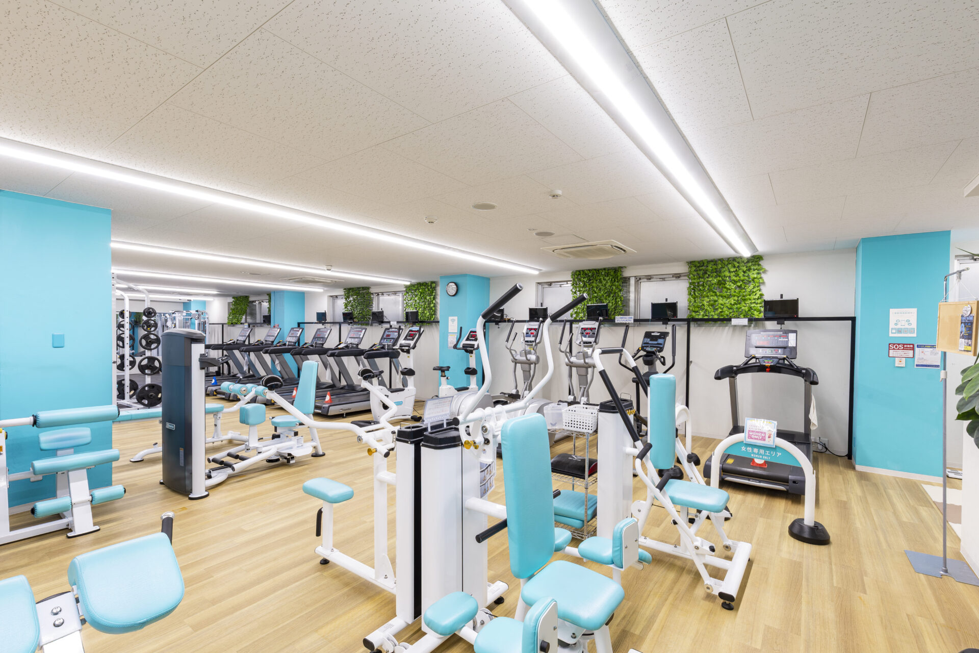 当ジムの施設は女性の方でも扱いやすいものになっており。各種補助用品もありますので、施設利用上のご心配はありません。